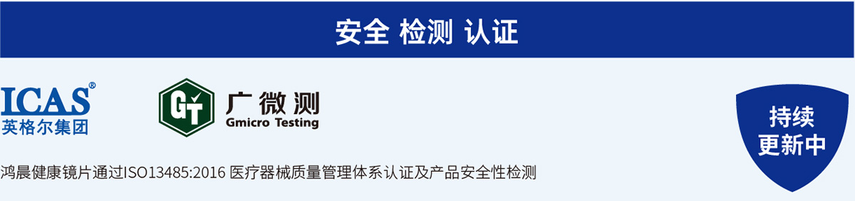 檢測依據(jù)及方法參照國家標(biāo)準(zhǔn)GB/T31713-2015附錄A,證實鴻晨健康鏡片抑菌為非溶出性抑菌,更安全。